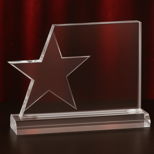 Introducing our Star Excellence Award — a stunning tribute to achievement and recognition. Crafted from premium clear acrylic, this award features a bold star silhouette seamlessly integrated into a sleek rectangular body, symbolizing brilliance, innovation, and outstanding performance. Its beveled edges and high-gloss finish catch the light beautifully, making it a standout piece for any ceremony or display.
