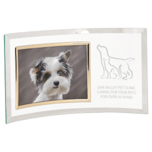Celebrate lasting dedication and heartfelt care with this beautifully crafted Curved Glass Pet Appreciation Jade Glass Crescent Picture Frame. Ideal for veterinary clinics, pet hospitals, animal shelters, or sports teams to name a few, this elegant award blends a modern glass design with timeless sentiment.
